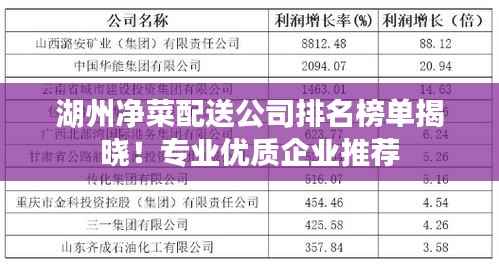 随着社会的快速发展和人们生活节奏的加快,净菜配送服务逐渐成为了现代生活中不可或缺的一部分,在湖州市,众多净菜配送公司如雨后春笋般涌现,为广大市民提供了便捷、高效的餐饮解决方案,本文将为您介绍湖州净菜配送公司的排名榜,以便您更好地了解这一领域的发展状况。