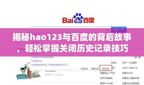 本文介绍了hao123和百度的关系,以及为什么关闭历史记录重要,还详细阐述了如何在hao123和百度中关闭历史记录,希望读者在阅读本文后,能够了解并正确操作,以保护个人隐私和安全,需要注意的是,在关闭历史记录的同时,也要权衡其他功能的使用需求,确保互联网使用的便捷性和安全性。