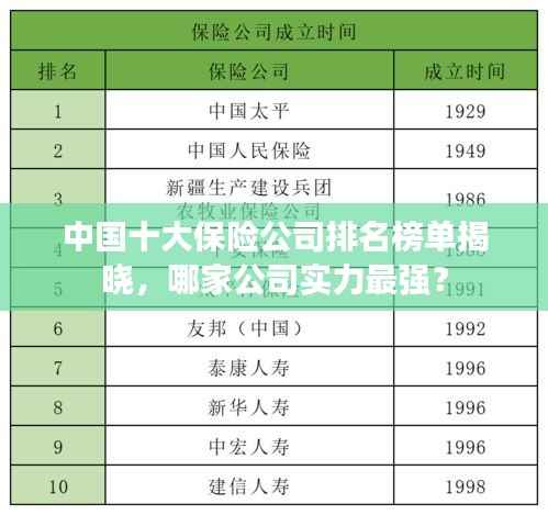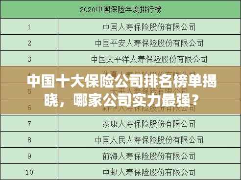 保险行业作为社会稳定的重要支柱,日益受到人们的关注,随着保险市场的不断发展,各大保险公司也在竞争中逐渐崭露头角,本文将对中国的十大强保险公司进行排名介绍,以帮助读者更好地了解这一领域的领军企业。