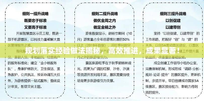 推进规划落实是各项事业发展的关键环节,本文总结了推进规划落实的经验做法,包括明确目标、制定详细规划、强化责任、加强沟通、注重宣传、强化监督、及时总结等,这些经验做法在某地区的实践中得到了有效验证,取得了显著成效,希望本文能为相关领域提供借鉴和参考,共同推进规划落实工作。