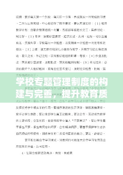 在当今教育背景下,学校专题管理制度的建立与完善显得尤为重要,学校专题管理涉及学校工作的方方面面,是保证学校正常运行、提高教学质量、培养学生全面发展的关键环节,本文将探讨学校专题管理制度的内涵、重要性以及构建与完善策略。