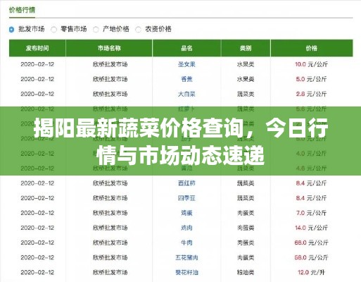 随着生活水平的提高,人们对食品价格尤其是蔬菜价格的关注度越来越高,揭阳地区的居民也不例外,对于“揭阳今日蔬菜价查询最新”这一关键词,大家都有着迫切的需求,本文将为大家带来揭阳地区最新蔬菜价格信息以及相关的市场动态。