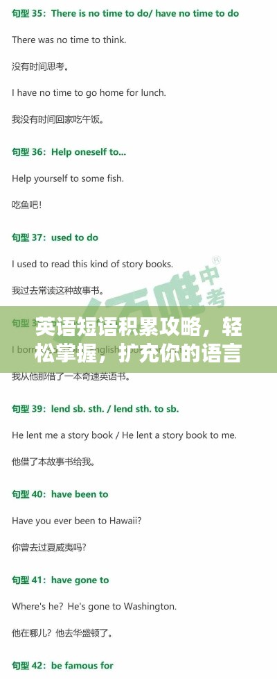 掌握丰富的英语短语对于提升英语水平至关重要,通过广泛阅读、观看英文影视作品、使用词典和在线资源以及实践应用等方法,可以有效积累英语短语,采用关联记忆法、笔记整理和互动学习等策略,有助于扩充英语短语,在学习过程中,要保持兴趣,制定合理的学习计划,确保持续学习与进步,不断增加英语短语,将为英语学习者的口语、写作和听力能力提供有力支持,为未来的学习和工作打下坚实的基础。