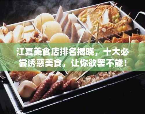 转载请注明来自南京强彩光电科技有限公司,本文标题:《江夏美食店排名揭晓,十大必尝诱惑美食,让你欲罢不能!》
