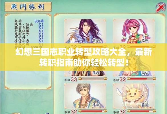 《幻想三国志》作为一款深受玩家喜爱的角色扮演游戏,其丰富的剧情、独特的战斗系统以及多样化的职业转职系统,为玩家提供了无尽的游戏体验,本文将为大家带来最新的幻想三国志转职攻略,帮助大家更好地了解游戏,提升角色实力,享受游戏乐趣。