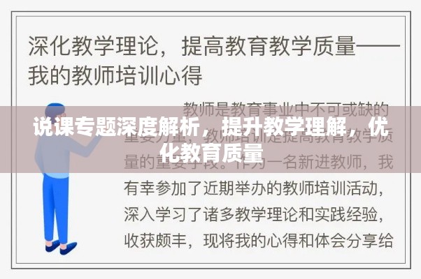 在当今教育改革的浪潮中,说课作为一种重要的教学研究活动,已经成为教师专业成长的重要途径,说课不仅是对课程理解的展示,也是对教学理念的反思和提升,而专题说课,更是对某一知识点或技能点的深入挖掘和研讨,有助于教师更深入地理解教学内容,提升教学质量,本文将从说课和专题说课的内涵、意义、实施策略等方面进行探讨。