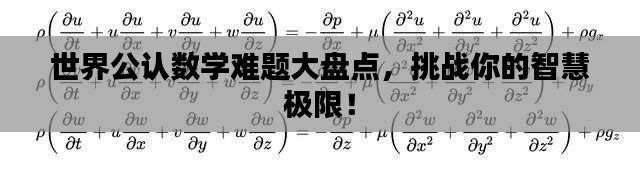 数学,这棵古老而常青的学科之树,历来孕育着无数挑战人类智慧的难题,在世界范围内,一些数学难题因其深奥、复杂和影响力广泛而被公认为数学史上的重要里程碑,本文将为您揭示一些世界公认的数学难题,并对其进行排名。
