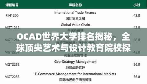 随着全球化的步伐加快,艺术与设计教育的国际交流与合作日益频繁,在这样的背景下,OCAD世界大学排名应运而生,为广大学生提供了了解全球艺术与设计教育资源的窗口,本文将为您详细介绍OCAD世界大学排名,带您走进艺术与设计教育的全球顶尖学府。