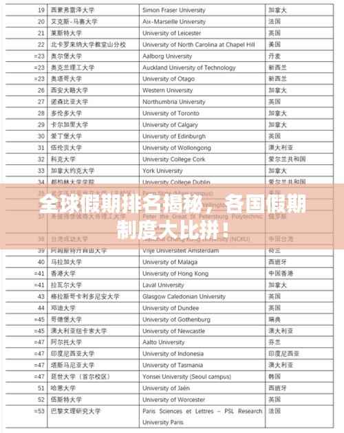 在全球化的今天,各国之间的文化交流日益频繁,员工福利和休息时间成为各国政策制定者关注的焦点之一,假期作为衡量一个国家劳动者福利的重要指标之一,其长短和安排反映了不同国家的文化特色和社会制度,本文将为您揭示世界国家假期排名的背后故事,探寻全球假期制度的奥秘。