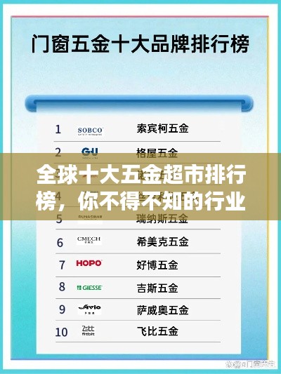 五金行业是工业领域的重要组成部分,涵盖了各种金属材料的制造、加工和销售,随着全球经济的发展和人们对五金产品的需求不断增长,五金超市在全球范围内逐渐兴起,本文将介绍世界十大五金超市排名,让读者了解全球五金零售行业的领军企业。