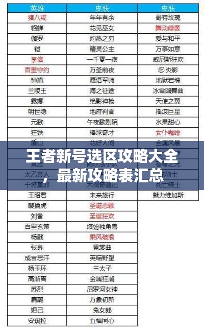 王者荣耀作为一款热门手游,拥有众多玩家,对于新号玩家来说,选择一个合适的游戏区是开始游戏的重要一步,本文将为大家提供最新的王者新号选区攻略表,帮助新玩家更好地融入游戏,提升游戏体验。
