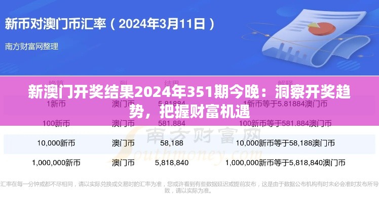 转载请注明来自南京强彩光电科技有限公司,本文标题:《新澳门开奖结果2024年351期今晚:洞察开奖趋势,把握财富机遇》