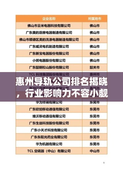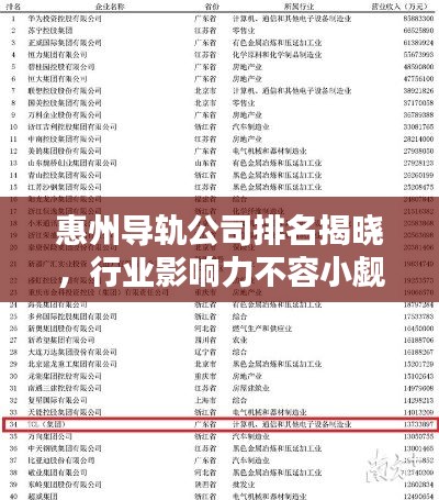 惠州,作为广东省的一个重要城市,近年来在制造业领域取得了显著的发展,在众多制造业企业中,导轨公司的发展尤为引人注目,本文将探讨惠州导轨公司的排名及其行业影响力。