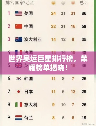 奥运,这个全球体育盛事,汇聚了各国的精英运动员,在这些运动员中,有些巨星以其卓越的成就和非凡的实力,成为了世界奥运历史上的传奇人物,以下是我心中的世界奥运巨星排名,让我们一起走进他们的辉煌世界。
