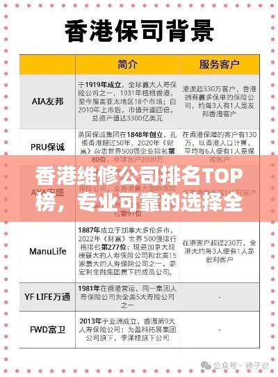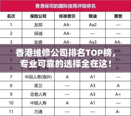 随着科技的不断发展和进步,维修行业也在逐渐壮大,在香港这个国际化大都市,维修公司众多,竞争激烈,本文将为您介绍香港维修公司的排名,以便您在需要维修服务时做出更好的选择。