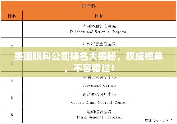 随着全球医疗技术的不断进步,眼科领域也在迅速发展,美国作为医疗技术的领跑者,其眼科领域的发展尤为引人注目,许多眼科公司在研发、生产、销售等方面表现出色,赢得了全球市场的认可,本文将探讨美国眼科公司的排名,介绍一些在这一领域表现突出的公司。