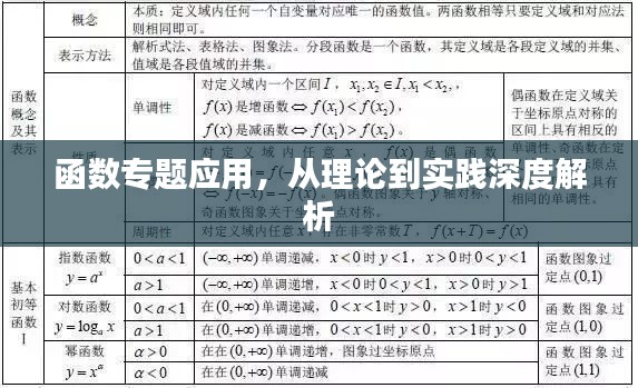 在数学的广阔领域中,函数作为核心概念之一,其重要性不言而喻,函数专题应用,旨在将函数的理论知识与实践应用相结合,通过具体实例探究函数的实际价值,本文将围绕函数专题应用展开,带领读者走进函数的世界,感受其魅力。