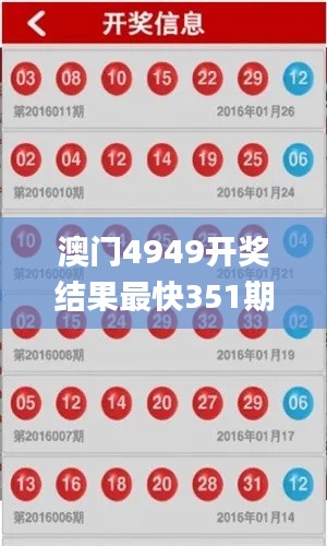 澳门4949作为本地非常重要的彩票之一,每期开奖的结果都备受瞩目。随着技术的发展和信息化时代的到来,开奖结果的传播速度已经大大提升,澳门4949开奖结果最快351期,意味着最新的开奖信息能够得到极速的传播和更新。这对于保证彩票的公正性和透明度具有至关重要的作用,同时也增强了彩民对澳门4949的信任度。