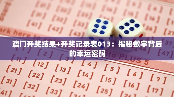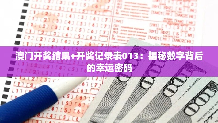 为确保澳门彩票行业的透明度和公正性,我们特此发布“澳门开奖结果+开奖记录表013:揭秘数字背后的幸运密码”文件。本文件旨在通过详细的澳门开奖结果+开奖记录表013对最近一期的彩票数据进行公示,使得公众能够对该期彩票号码的由来、其中的概率逻辑与幸运因素有一个清晰的认识,同时也借此加深澳门居民及彩票爱好者对博彩政策的了解和信任。