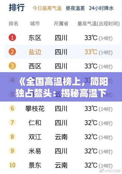 标题:《全国高温榜上,简阳独占鳌头:揭秘高温下的城市挑战》