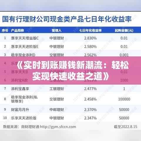 标题:《实时到账赚钱新潮流:轻松实现快速收益之道》