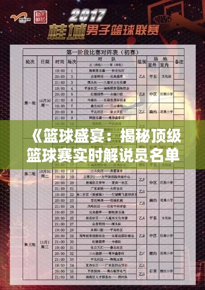 标题:《篮球盛宴:揭秘顶级篮球赛实时解说员名单表》