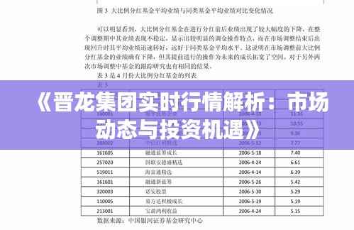 标题:《晋龙集团实时行情解析:市场动态与投资机遇》