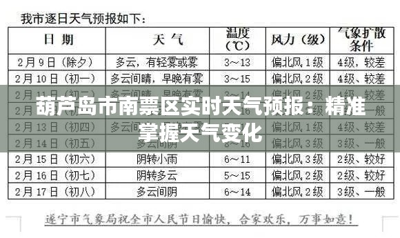 总之,葫芦岛市南票区的天气情况多变,实时天气预报可以帮助大家更好地了解天气变化,合理安排生活和工作。希望大家在享受美好时光的同时,也能关注天气变化,确保自身安全。