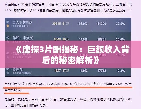 标题:《唐探3片酬揭秘:巨额收入背后的秘密解析》