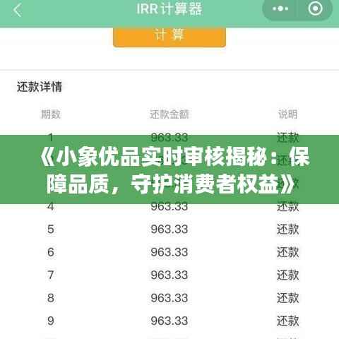 标题:《小象优品实时审核揭秘:保障品质,守护消费者权益》
