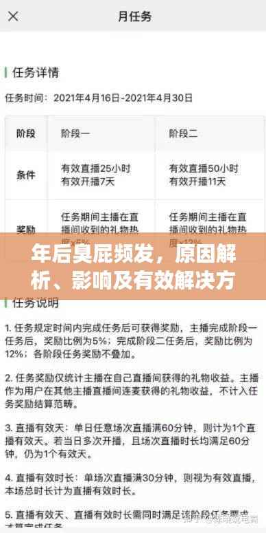年后臭屁不断,成为许多人在春节期间的一大困扰,这种现象不仅影响个人形象,还可能影响社交活动的心情,本文将从原因、影响及解决方法三个方面,为大家解析这一问题,帮助大家远离尴尬。