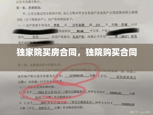 独家院买房合同是购房者与开发商之间的重要法律文件,对于保障双方的合法权益具有重要意义。在签订合同前,购房者应仔细阅读合同条款,确保合同内容真实、完整、合法。如有疑问,可咨询专业律师,以确保合同的有效性和可行性。