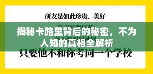 在当今社会,越来越多的人开始关注健康和饮食问题,而在这其中,一个不可忽视的概念便是卡路里,本文将为您带来一篇关于卡路里的专题文章,揭示卡路里背后的秘密,帮助您更好地了解并管理自己的饮食健康。