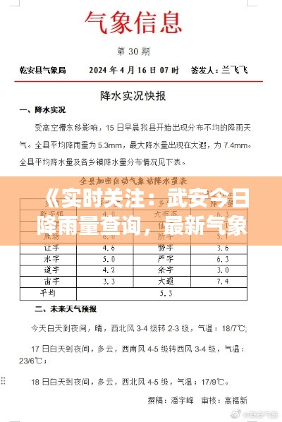 标题:《实时关注:武安今日降雨量查询,最新气象信息速递》