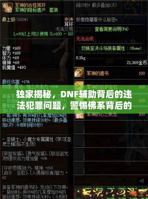 随着网络游戏的普及,各种游戏辅助工具也应运而生,DNF(地下城与勇士)作为一款受欢迎的网络游戏,其辅助工具也备受关注,而“DNF辅助独家佛”这一关键词背后,隐藏着严重的违法犯罪问题,值得我们深入探究。
