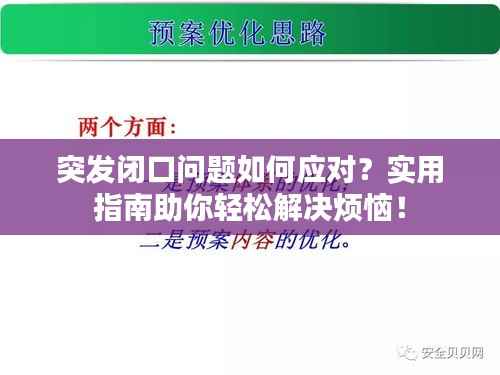 在日常生活中,我们可能会遇到各种突发状况,其中之一就是“突发闭口”,这种情况可能让我们感到困惑和不适,面对突发闭口,我们应该怎么办呢?本文将从以下几个方面为大家解析这个问题,帮助大家了解如何应对突发闭口。