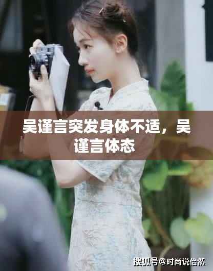 近日,演员吴谨言突然在微博上公布了自己身体不适的消息,引发了广大网友和粉丝的关注。吴谨言在微博中表示,自己在拍摄过程中突发身体不适,目前已在家中休养。这一消息一出,立即引起了网友们的热议,许多人纷纷表达了对吴谨言的关心和祝福。