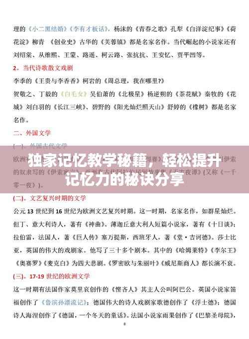 记忆是学习的基石,良好的记忆能力对于提高学习效果具有至关重要的作用,本文将分享一些独家记忆教学技巧,帮助学习者提高记忆力,更好地掌握知识。
