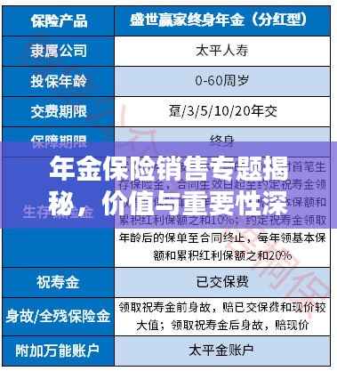 在当今社会,随着人们生活水平的提高和保险意识的增强,年金保险作为一种重要的保险产品,越来越受到人们的关注和重视,本文将围绕年金保险销售专题展开讨论,帮助大家理解年金保险的价值和重要性。