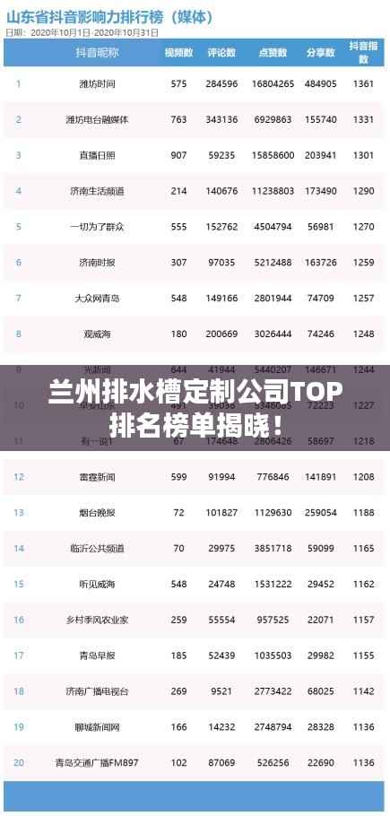 随着城市化进程的加快,排水系统的建设日益受到各地政府的重视,兰州作为西北地区的重要城市,其排水槽定制公司的数量和质量也在不断提升,本文将为您介绍兰州地区的排水槽定制公司排名,以帮助您更好地了解这一领域的发展状况。