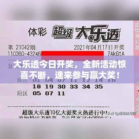 随着社会的快速发展和人们生活的日益丰富多彩,各类娱乐活动也层出不穷,大乐透作为一种广受欢迎的彩票游戏,一直以其独特的魅力和丰厚的奖金吸引着众多彩民,大乐透最新活动火热开启,全新开奖,千万彩民共同期待,翘首以盼。