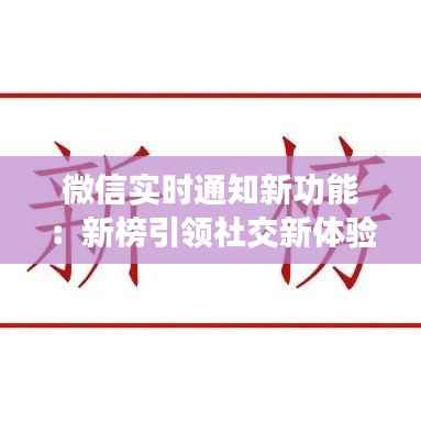 随着互联网技术的飞速发展,社交平台在人们的生活中扮演着越来越重要的角色。微信作为我国最受欢迎的社交软件,其功能也在不断地更新和优化。近日,微信推出了一项全新的实时通知功能——新榜,为广大用户提供更加便捷的社交体验。
