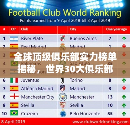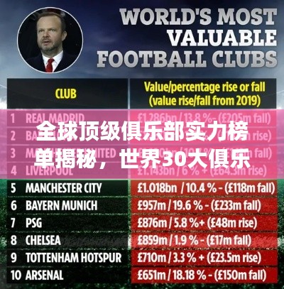 足球、篮球等体育项目的世界顶级俱乐部,以其卓越的竞技实力、雄厚的财力支持和广泛的影响力,成为国际体育舞台上的璀璨明星,本文将为您揭晓世界30大俱乐部排名,带您领略全球顶级俱乐部的风采。