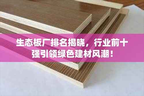 随着人们对环保意识的不断提高,生态板作为一种环保绿色建材,其市场需求日益增加,本文将为您介绍生态板厂排名前十名,这些企业在行业内具有广泛的影响力,是行业的领军者。
