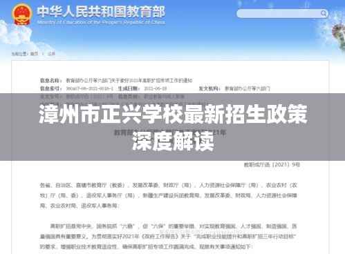 随着教育改革的不断深化和人们对优质教育的追求,漳州市正兴学校作为本地区一所知名学府,其招生政策备受关注,本文将详细介绍漳州市正兴学校最新的招生政策,帮助家长和学生更好地了解学校的招生要求和报名信息。