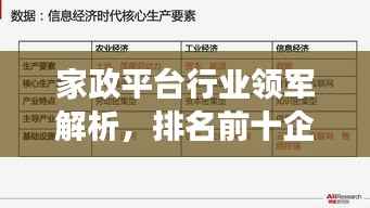 随着社会的快速发展和人们生活节奏的加快,家政服务需求日益增长,本文将为您介绍家政平台排名前十名,这些平台以其优质的服务、专业的团队和良好的口碑赢得了广大消费者的信赖。