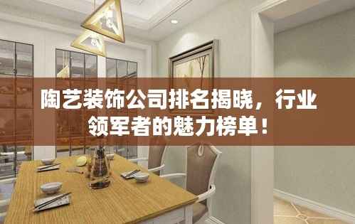 随着生活品质的提升,人们对室内装饰的要求也日益提高,陶艺装饰作为传统与现代美学的完美结合,受到了广大消费者的喜爱,本文将为你揭示陶艺装饰公司的排名,带你了解行业领军者的魅力。