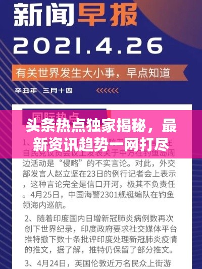 头条新闻作为一种新型的新闻形式,已经成为人们获取信息的重要途径之一,它通过快速、简洁、热点突出的特点,吸引了大量用户的关注,随着技术的进步和用户需求的变化,头条新闻将继续发展,探索更多的热点和趋势,我们期待头条新闻能够为我们带来更多的惊喜和有价值的信息。