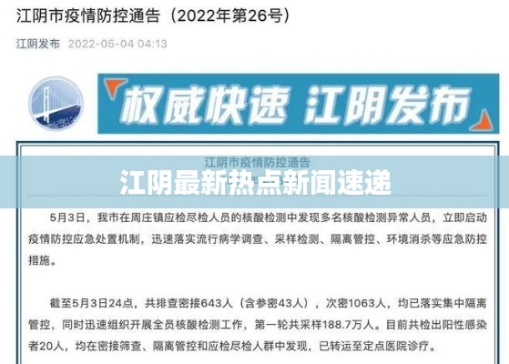 江阴,这座位于江苏省南部的美丽城市,近日有不少引人注目的新闻消息,本文将为您带来江阴的今日头条新闻,让您了解这座城市的发展动态。