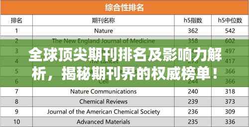 随着全球科研领域的蓬勃发展,期刊的排名成为了衡量学术影响力、研究质量和学术声誉的重要标准,本文将为您揭示全世界最顶尖的期刊排名及其影响力。